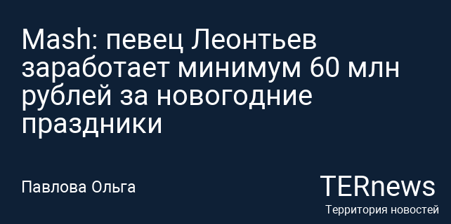 Mash: певец Леонтьев заработает минимум 60 млн рублей за новогодние праздники