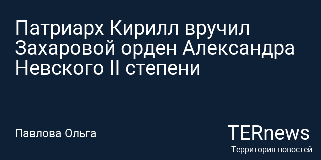 Патриарх Кирилл вручил Захаровой орден Александра Невского II степени
