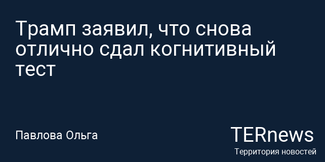 Президент США Дональд Трамп в блоге на платформе Truth Social заявил о своем прекрасном состоянии здоровья и успешной сдаче теста на когнитивные способности в третий раз подряд. Он процитировал врачей из Белого дома, которые отметили, что его здоровье является «идеальным», и что он ответил правильно на все сорок заданных вопросов, что, по его словам, не удавалось ни одному из предыдущих президентов или вице-президентов.