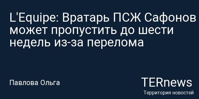 Вратарь клуба ПСЖ Матвей Сафонов, возможно, не сможет выйти на поле до шести недель из-за полученного перелома руки. Первоначальные ожидания заключались в том, что он вернется к играм в середине января, пропустив всего три-четыре недели. Об этом сообщает французское издание L’Equipe.