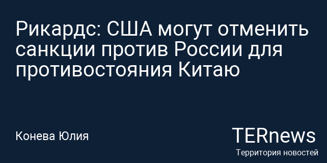 Рикардс: США могут отменить санкции против России для противостояния Китаю