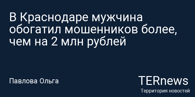 В Краснодаре мужчина обогатил мошенников более, чем на 2 млн рублей