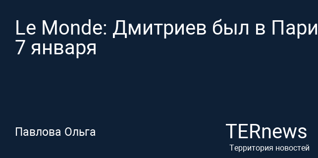 7 января в Париже находился Кирилл Дмитриев, который занимает должность спецпредставителя президента России по вопросам инвестиционного и экономического сотрудничества с зарубежными государствами, а также является главой Российского фонда прямых инвестиций. Об этом стало известно из сообщения французской газеты Le Monde, ссылающейся на источник, обладающий достоверной информацией.