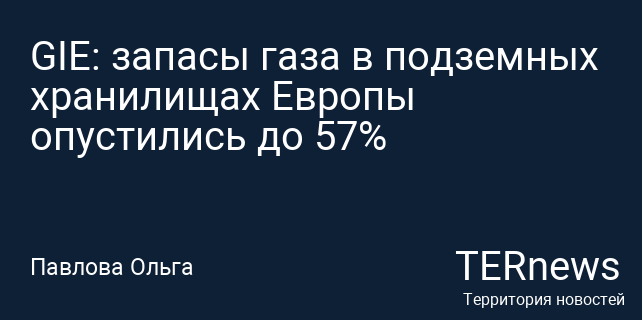 GIE: запасы газа в подземных хранилищах Европы опустились до 57%