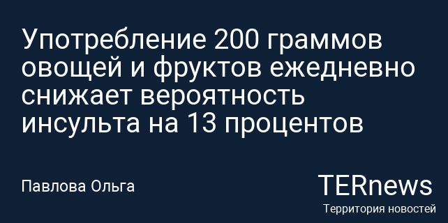 Употребление 200 граммов овощей и фруктов ежедневно снижает вероятность инсульта на 13 процентов