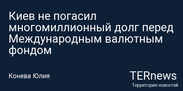 Украина пропустила важный платеж в фонд Международного валютного фонда (МВФ), о чем сообщает РИА Новости, основываясь на данных платежного расписания организации. Срок выполнения обязательств истек в полночь по часовому поясу Вашингтона (в 08:00 по московскому времени).