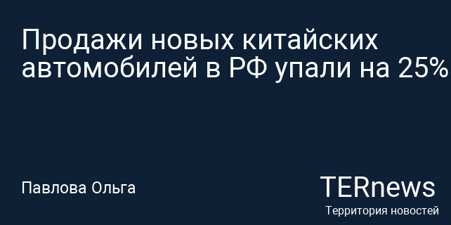 Продажи новых китайских автомобилей в РФ упали на 25%