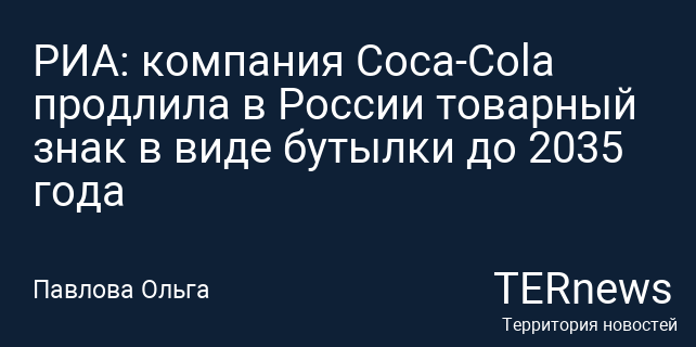РИА: компания Coca-Cola продлила в России товарный знак в виде бутылки до 2035 года