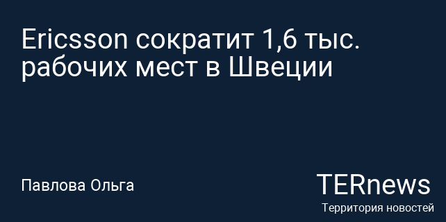 Ericsson сократит 1,6 тыс. рабочих мест в Швеции