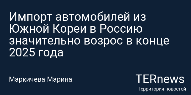 Импорт автомобилей из Южной Кореи в Россию значительно возрос в конце 2025 года