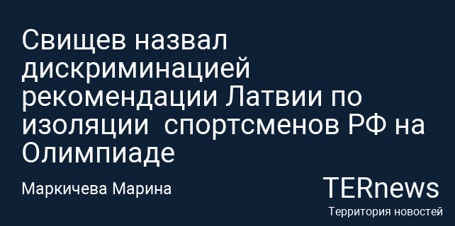 Свищев назвал дискриминацией рекомендации Латвии по изоляции спортсменов РФ на Олимпиаде