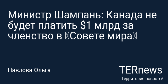 Министр Шампань: Канада не будет платить $1 млрд за членство в «Совете мира»
