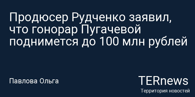 Продюсер Рудченко заявил, что гонорар Пугачевой поднимется до 100 млн рублей