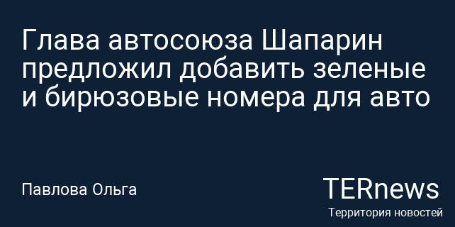 Глава автосоюза Шапарин предложил добавить зеленые и бирюзовые номера для авто