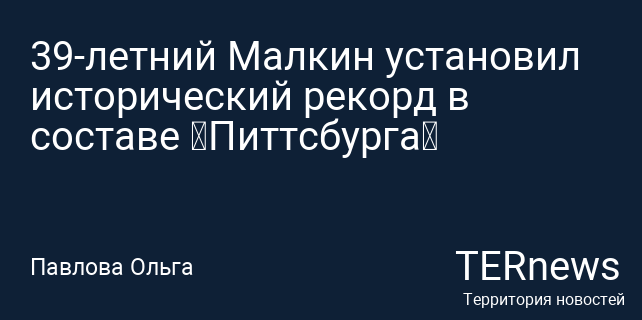 39-летний Малкин установил исторический рекорд в составе «Питтсбурга»