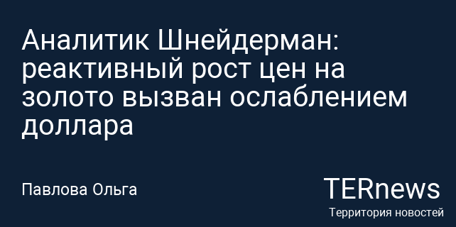 Аналитик Шнейдерман: реактивный рост цен на золото вызван ослаблением доллара