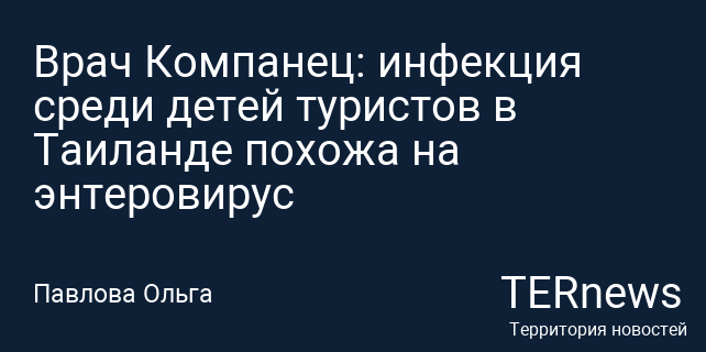 Врач Компанец: инфекция среди детей туристов в Таиланде похожа на энтеровирус