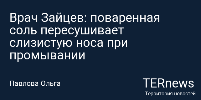 Врач Зайцев: поваренная соль пересушивает слизистую носа при промывании