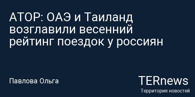 АТОР: ОАЭ и Таиланд возглавили весенний рейтинг поездок у россиян