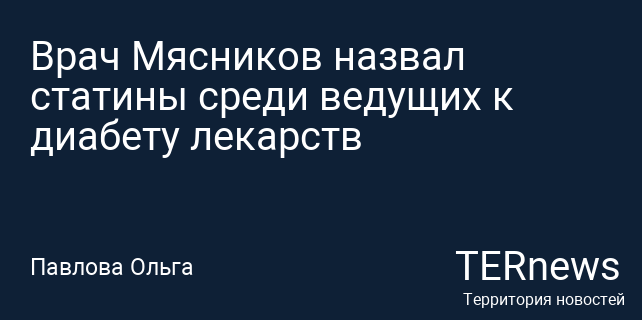 Врач Мясников назвал статины среди ведущих к диабету лекарств