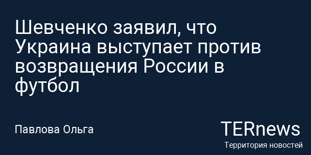 Шевченко заявил, что Украина выступает против возвращения России в футбол
