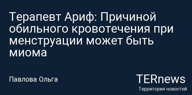 Терапевт Ариф: Причиной обильного кровотечения при менструации может быть миома