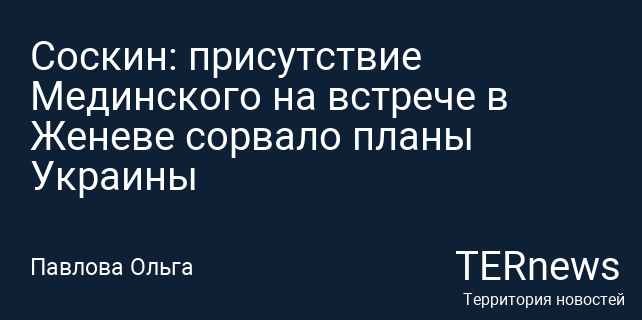 Соскин: присутствие Мединского на встрече в Женеве сорвало планы Украины