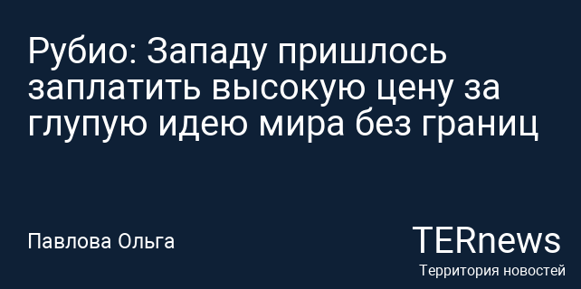Рубио: Западу пришлось заплатить высокую цену за глупую идею мира без границ