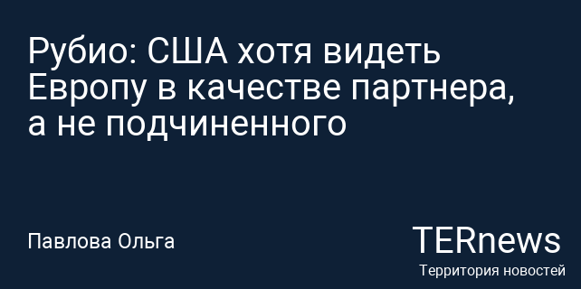 Рубио: США хотя видеть Европу в качестве партнера, а не подчиненного