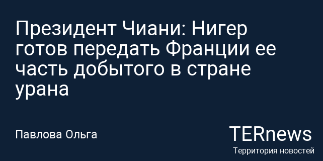 Президент Чиани: Нигер готов передать Франции ее часть добытого в стране урана