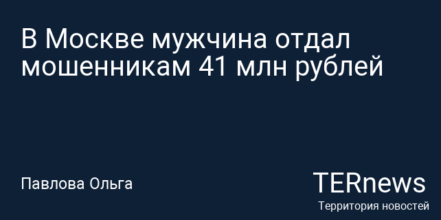 В Москве мужчина отдал мошенникам 41 млн рублей