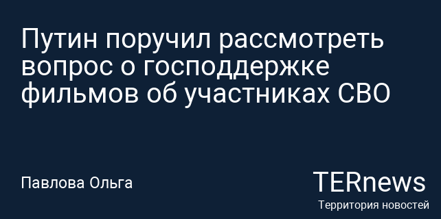 Президент России Владимир Путин предложил изучить возможность оказания государственной поддержки кинопроектам, посвящённым участникам специальной военной операции. Соответствующий перечень поручений был обнародован на официальном сайте Кремля в рамках итогов программы «Итоги года».