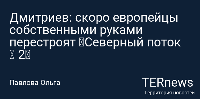 Дмитриев: скоро европейцы собственными руками перестроят «Северный поток — 2»