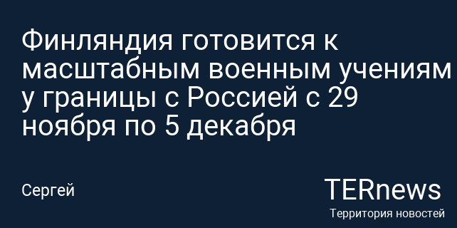 Финляндия анонсировала проведение военных маневров, которые состоятся с 29 ноября по 5 декабря вблизи границы с Российской Федерацией. В этих учениях примут участие 15 тысяч военнослужащих и около 900 единиц техники.