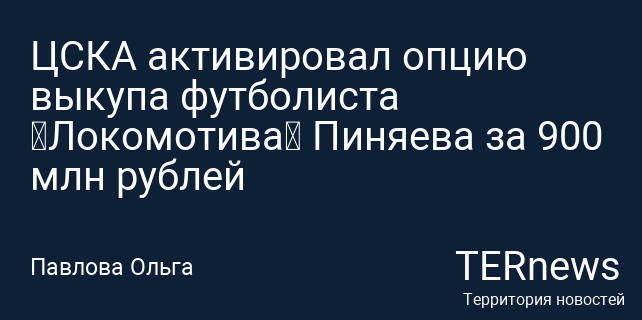 ЦСКА активировал опцию выкупа футболиста «Локомотива» Пиняева за 900 млн рублей